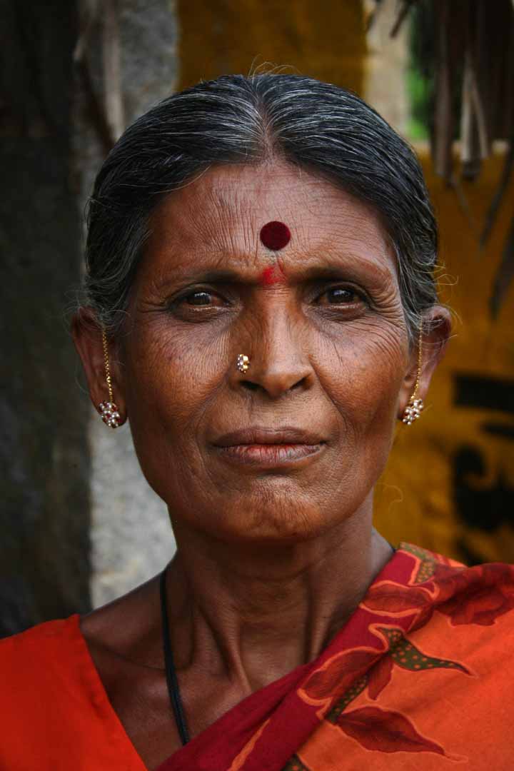 それはサリーを着た伝統的なインド女性が、顔にアクセサリーを付けた姿だ。